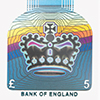 The note is printed on polymer, which is a thin and flexible plastic material. On the front of the note, you can feel raised print. For example, on the words ‘Bank of England’ and in the bottom right corner, around the number '5'.