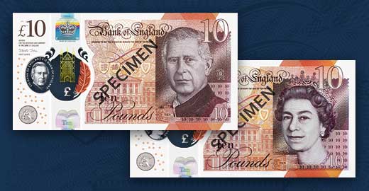 The printed lines and colours on the note are sharp, clear and free from smudges or blurred edges. If you use a magnifying glass, you will see the value of the note written in small letters and numbers below the monarch's portrait.
