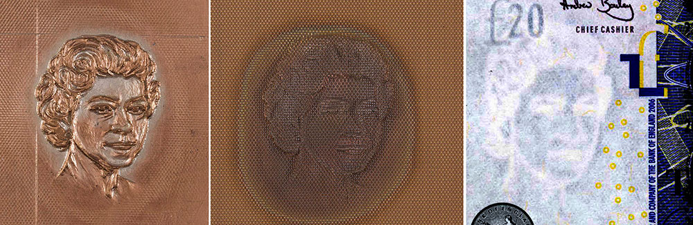 This likeness, by designer Roger Withington, has been used on all Bank of England notes since. It has become a familiar image, which makes it a useful anti-counterfeiting feature. People can detect changes in pictures of faces, especially well-known ones, much more easily than in other types of pattern. That helps people detect counterfeits with badly copied images.