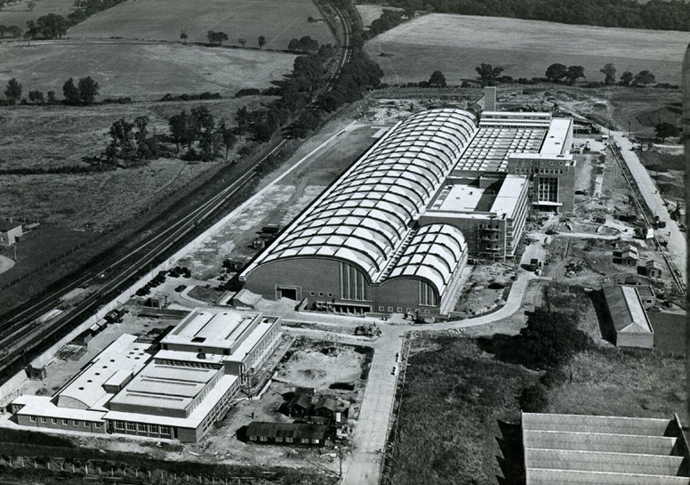 The two arched halls give the Debden Printing Works a distinctive profile.