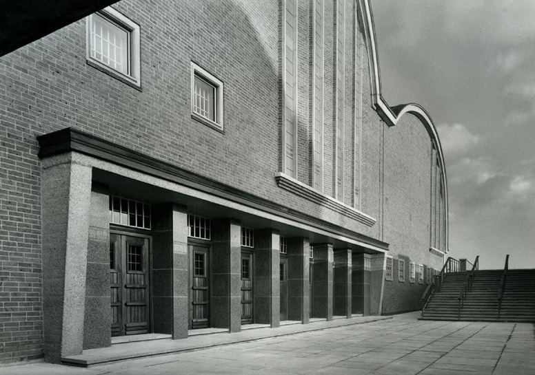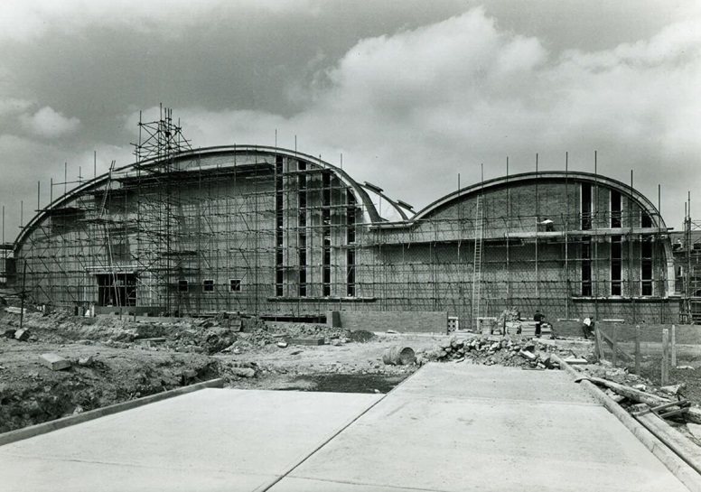 They used reinforced concrete to create a high, arched ceiling for the main hall. The roof didn’t need supporting pillars so there was more space for the production line.